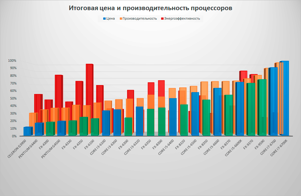 И все-таки, как же подойти к выбору процессора? Есть два варианта: исходить из цены или из производительности. Первый вариант довольно прост: определяем доступный бюджет, подбираем конфигурацию будущего ПК без процессора, а на оставшиеся деньги стараемся приобрести что-то наиболее оптимальное. Во втором варианте все немного сложнее, сначала определяется нужный уровень производительности, а затем уже формируется конфигурация, основную трудность здесь составляет выбор конкретного процессора в линейке, так как разница в производительности неочевидна, а разница в цене может быть весьма ощутимой.