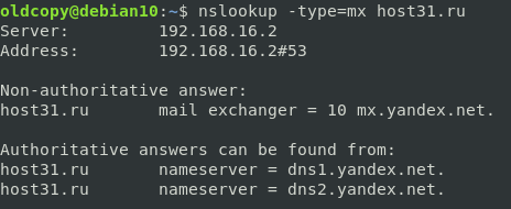 1nslookup -type=mx host31.ru