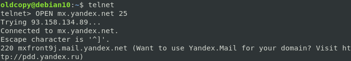 Несмотря на кажущуюся сложность этого метода, он достаточно прост и необходимость ручного ввода SMTP-команд не должна вас пугать. Зато вы сможете получить всю необходимую для диагностики информацию прямо здесь и сейчас, не оглядываясь на возможности и ограничения сторонних сервисов.