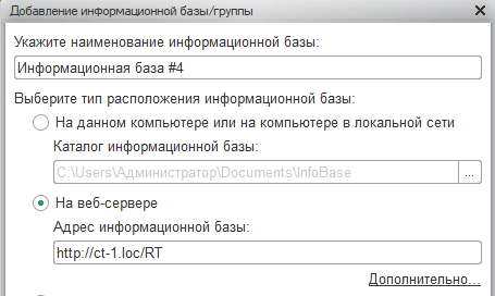 При настройке тонкого клиента просто укажите адрес в диалоге добавления новой информационной базы: