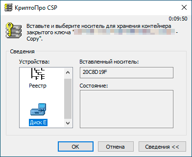 Альтернативой хранения ключей на флешке может быть размещение контейнеров на жестком диске, для этого нажмите Скопировать контейнер и выберите в качестве носителя Directory: