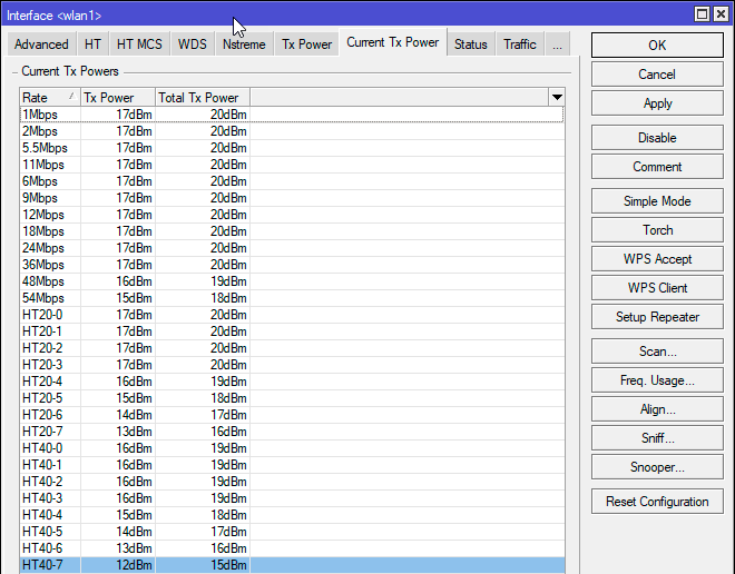 При выборе Tx Power Mode - manual вы можете выставить мощность для каждого режима передачи самостоятельно, при этом не забывайте о том, что было сказано выше и не забывайте контролировать реальную излучаемую мощность на закладке Current Tx Power.
