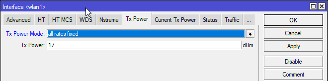 При установке Tx Power Mode в default устройство применит заранее заданные значения мощностей передатчика, специально подобранные для используемого чипа. Если Frequency Mode было выставлено в regulatory-domain, то произойдет ограничение мощности согласно региональным стандартам.