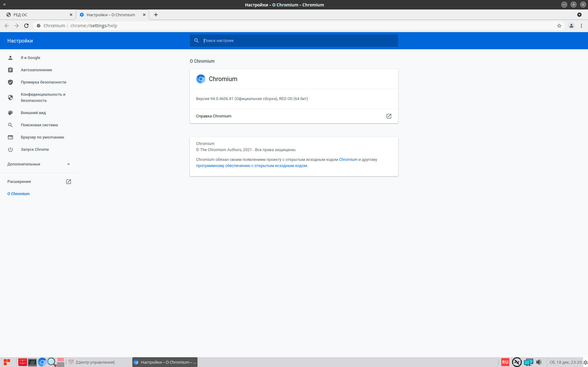 В качестве браузера представлен Chromium, причем очень даже свежий, в системе установлена версия 94, тогда как последняя на момент написания статьи - 96. Также заявлена поддержка всех отечественных плагинов для криптографии, хотя сами плагины придется устанавливать отдельно.
