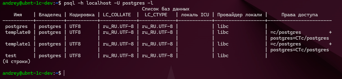 1psql -h localhost -U postgres -l