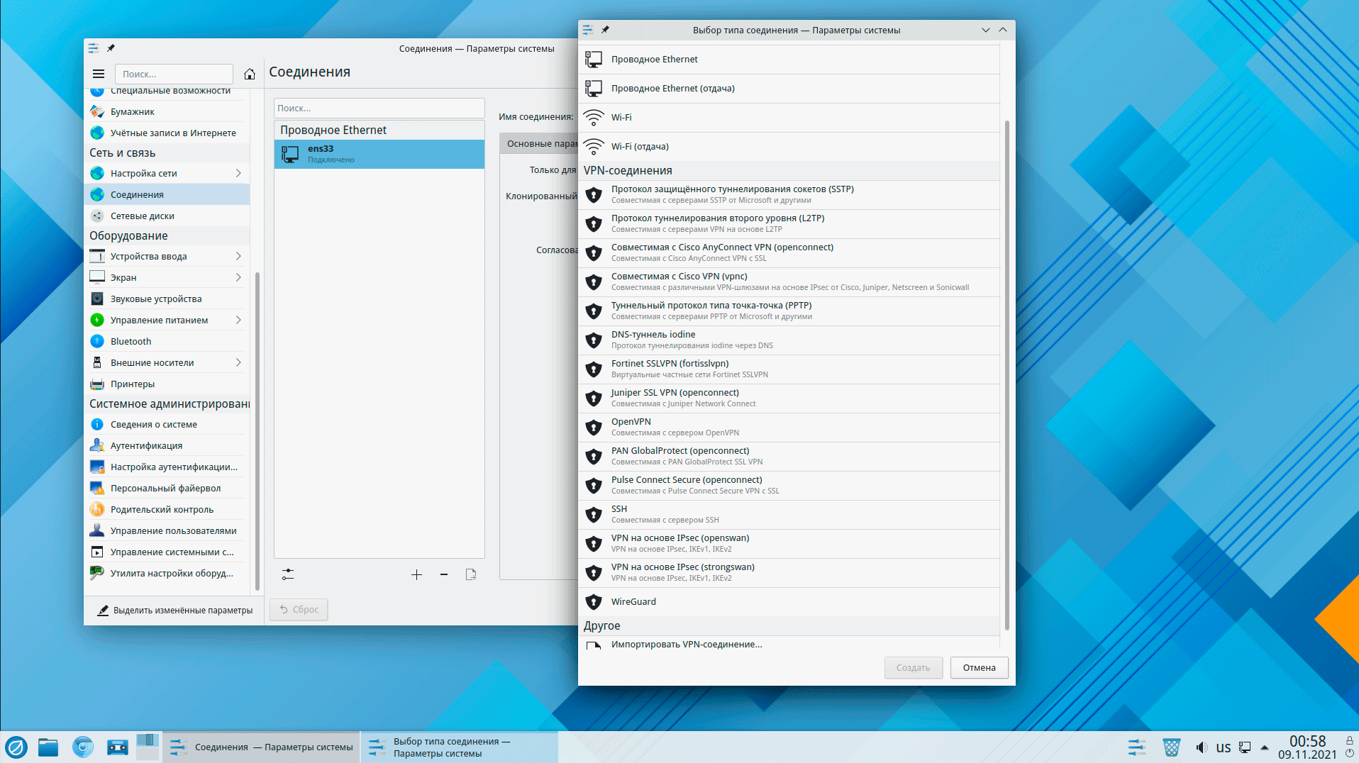 Также остались некоторые инструменты настройки системы, такие как брандмауэр, родительский контроль и т.д., но выглядят они в среде Plasma чужеродно и это сразу бросается в глаза, поэтому снова появляется нехорошее предчувствие, что их развитием никто заниматься не собирается и присутствуют они тут только "по инерции".