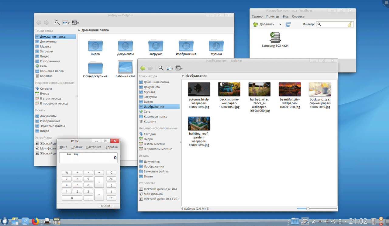 И рабочий стол KDE, эту среду трудно с чем-либо спутать.