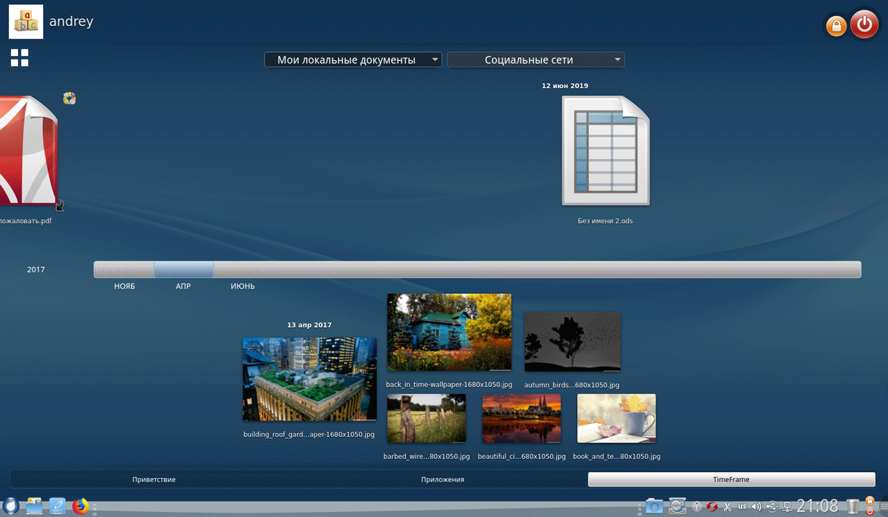 Отдельный раздел TimeFrame выводит документы и мультимедийное содержимое домашней папки на временной шкале, это довольно удобно, если скажем, нужно найти фотографию, созданную две недели назад или документ, про который вы помните только то, что дело было в декабре...