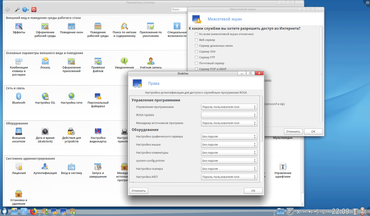 Панель управления в целом стандартная для Linux-систем, многие настройки явно рассчитаны на неподготовленного пользователя. На наш взгляд это правильно, потому что именно сложность настроек отпугивает от Linux начинающих, а опытные линуксоиды все равно предпочитают выполнять настройки через консоль.