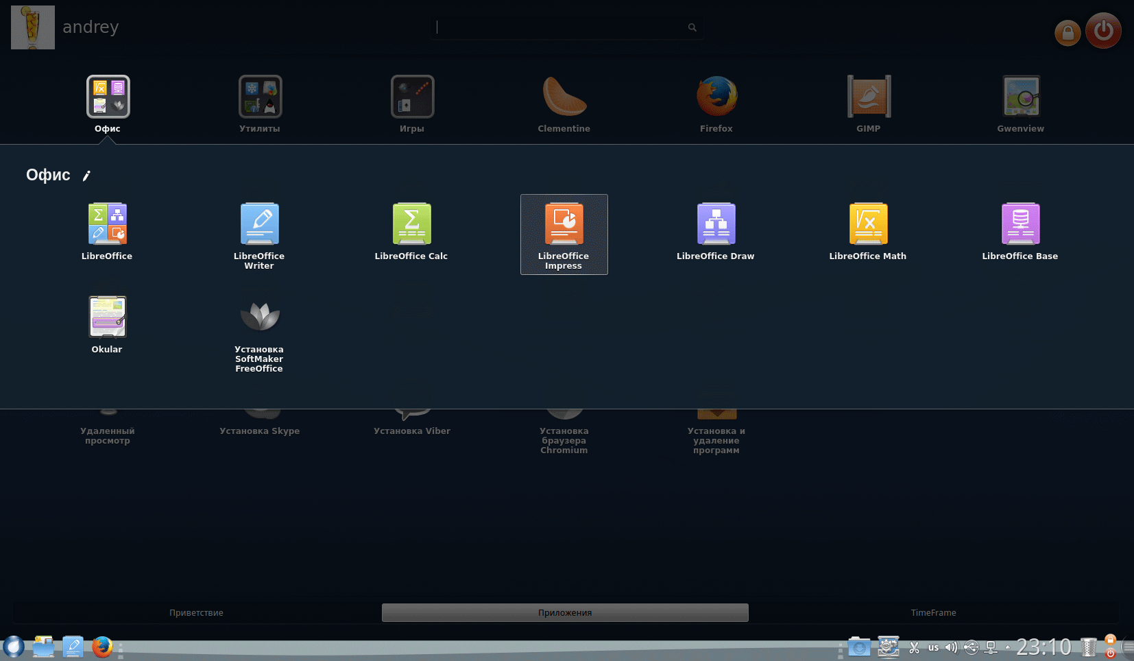 Набор софта стандартный для Linux-систем: LibreOffice в качестве офисного пакета, GIMP, программы для работы со звуком и видео, для игр предлагается установить Steam. Установку можно выполнить прямо со стартового экрана. Аналогичным образом можно быстро установить Skype, Viber и некоторое другое ПО.