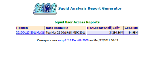 После того как утилита закончит работу набираем в браузере http://10.0.0.1/squid-reports, вы должны увидеть следующую страницу: