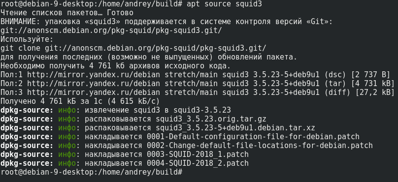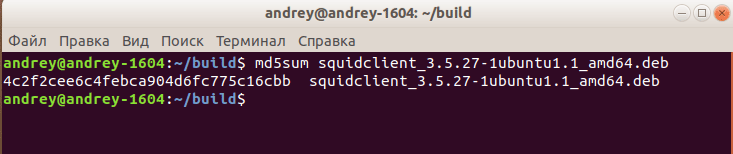 Вернемся в директорию build в которой обнаружим достаточно много deb-пакетов, но нам нужны не все, будет достаточно squid-common (архитектура all), squid и squidclient (архитектура amd64 или i386).