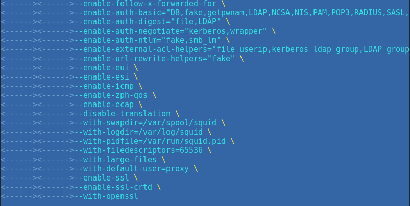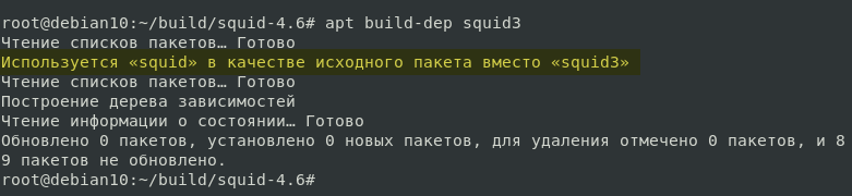 В Debian 10 представлена гораздо более свежая версия Squid - 4.6 (в Ubuntu 20.04 - 4.10), однако ее сборка ничем не отличается от предыдущих версий. Небольшим отличием является, также как и в Ubuntu 16.04, использование пакета libssl-dev вместо libssl1.0-dev: