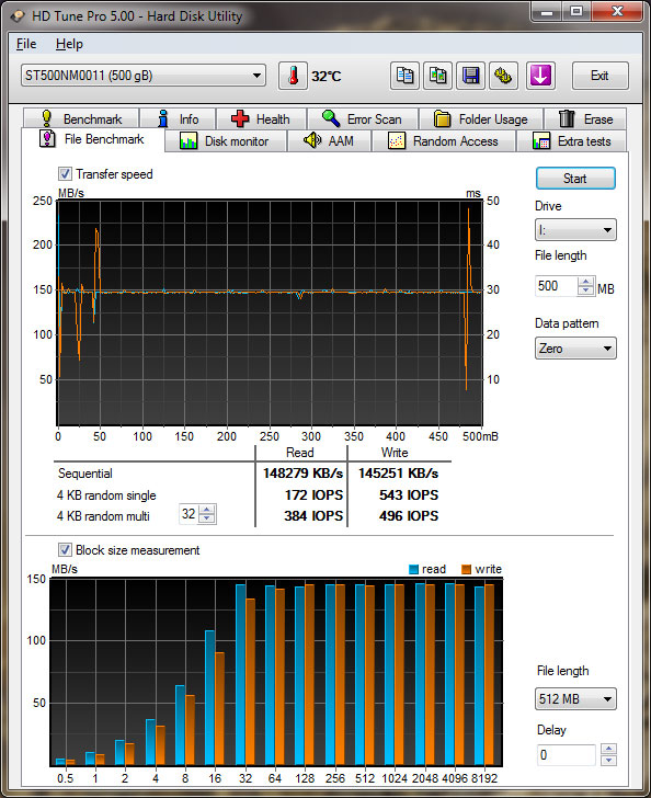 HD Tune Pro также показал более ровный график, нежели настольная модель Seagate, что может говорить о более высоком качестве изготовления пластин и более точной работе механики. При этом скоростные характеристики диска выглядят несколько скромнее, но делать какие-либо выводы пока не стоит.