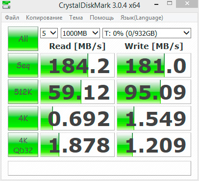 Тестирование, по уже сложившейся традиции, начнем с CrystalDiskMark: