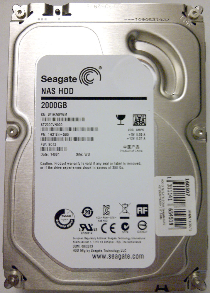 В нашей лаборатории оказались два 2 Tb SATA 6Gb / s Seagate NAS ST2000VN000 64Mb, стоимость которых на момент тестирования составила 3 600 руб. или 1,8 руб./ГБ, что сравнимо с основным конкурентом - Western Digital Red, стоимость диска аналогичной емкости была равна 3800 руб. или 1,9 руб./ГБ. Это несколько дороже стоимости хранения на обычных дисках, которая составляет около 1,5 руб/ГБ, но работа дисков в составе NAS имеет свои особенности.