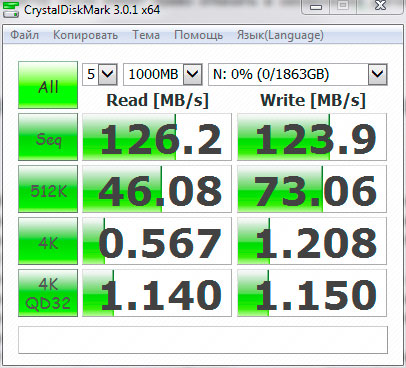 Посмотрим как справились с этой задачей в компании Seagate. Для первого ознакомления с параметрами диска мы традиционно используем CrystalDiskMark.