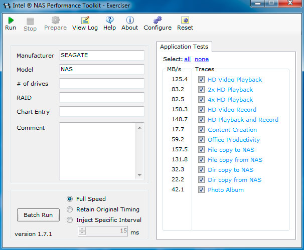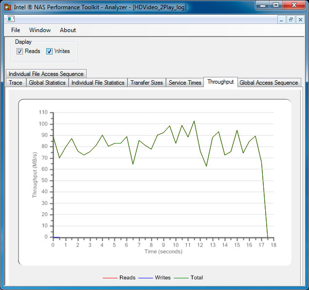 Посмотрим, как будет вести себя диск на реальных задачах, для этого мы провели набор тестов с помощью Intel NASPT.