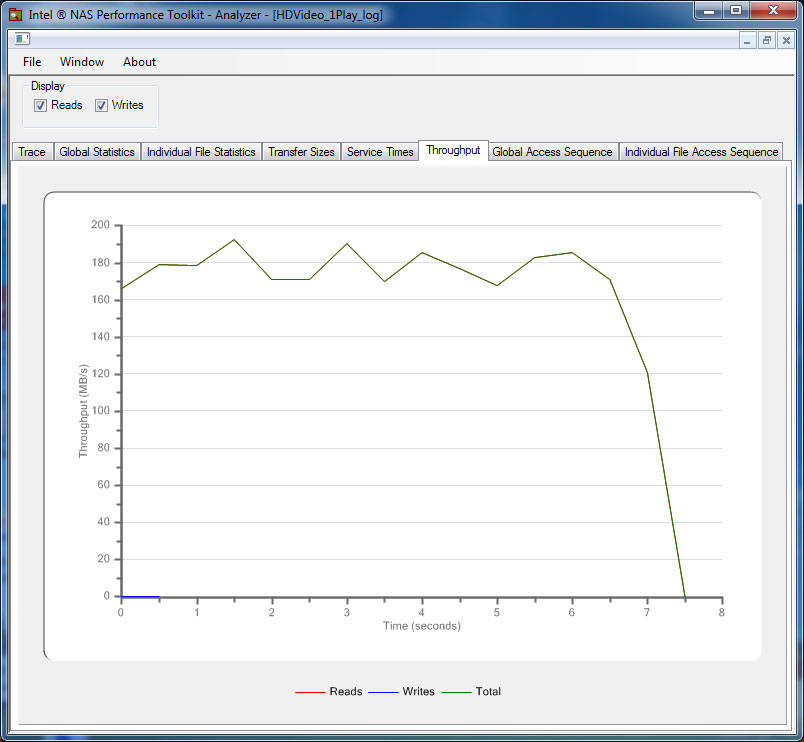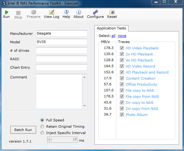 Гораздо интереснее взглянуть на результаты Intel NASPT. В тестах на работу с видео и крупными файлами диск показывает блестящие результаты, сравнивать их можно только с VelociRaptor. В остальном результаты на уровне настольного диска, как видим специализация проявляется очень четко.