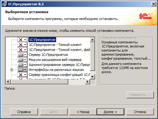 Основной компонент - Сервер 1С:Предприятия, уточнять его назначение нам кажется излишним. Если вы предполагаете использовать веб-сервер или тонкий клиент через интернет - следует установить Модули расширения веб-сервера, компонента Администрирование сервера 1С:Предприятия обязательной не является, ее можно (и нужно) установить на рабочее место администратора.