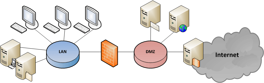 По возможности потенциально опасную зону следует вынести в отдельную подсеть - демилитаризованную зону (DMZ), которая отделена от основной сети дополнительным брандмауэром.