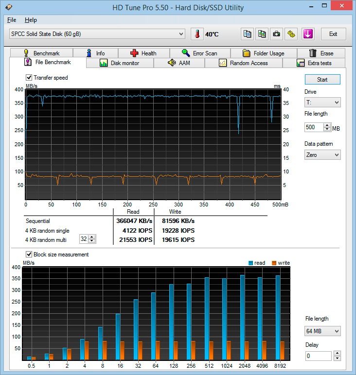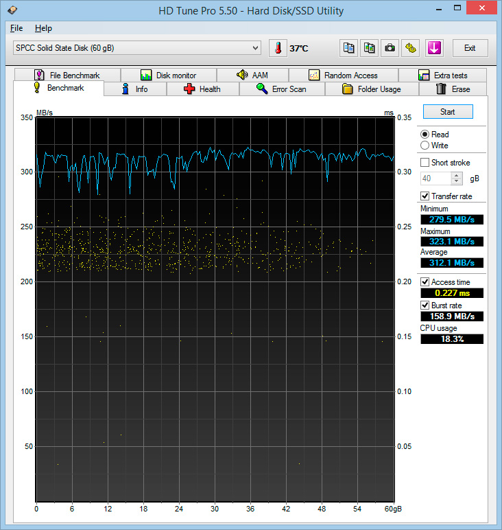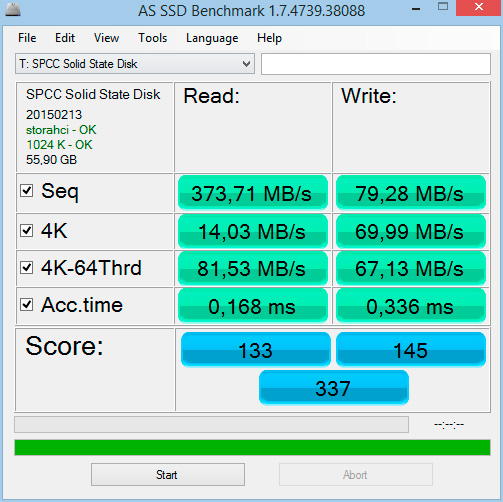 Ничего нового мы здесь не увидим, результат подтверждает предыдущие тесты. Но даже по "попугаям" диск серьезно уступает своему прямому конкуренту от Smartbuy, набирая 337 "попугаев" против 500.