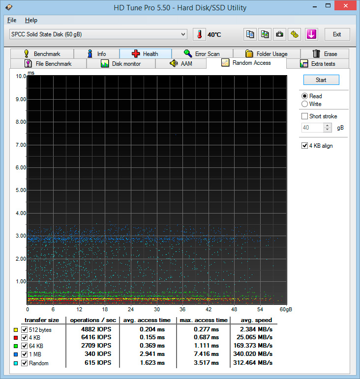Здесь тоже все пока неплохо, разве что велико время случайного доступа - 227 мс, против 60 мс у Phison, но в любом случае это на порядок лучше, чем аналогичный показатель любого жесткого диска.