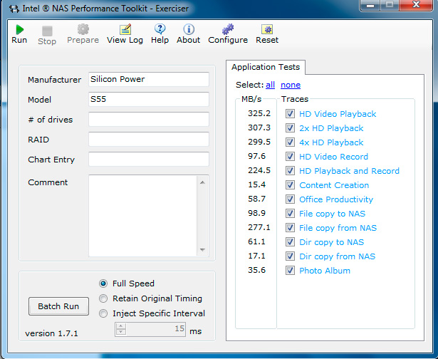 Ладно, это все лирика, посмотрим, что там у нас в реальных сценариях тестового пакета Intel NASPT.