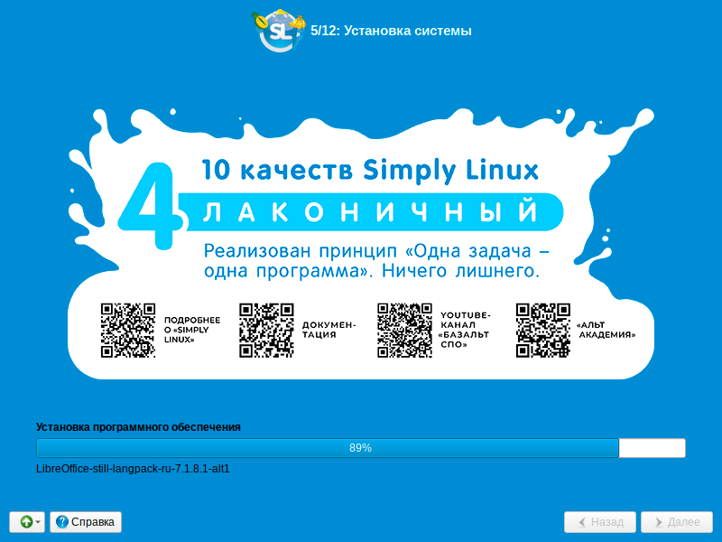 Пока копируются пакеты мы можем ознакомиться с преимуществами системы. Все сделано очень неплохо, ярко, свежо, интересно. Уже сейчас настраиваешься на позитивные впечатления от системы.