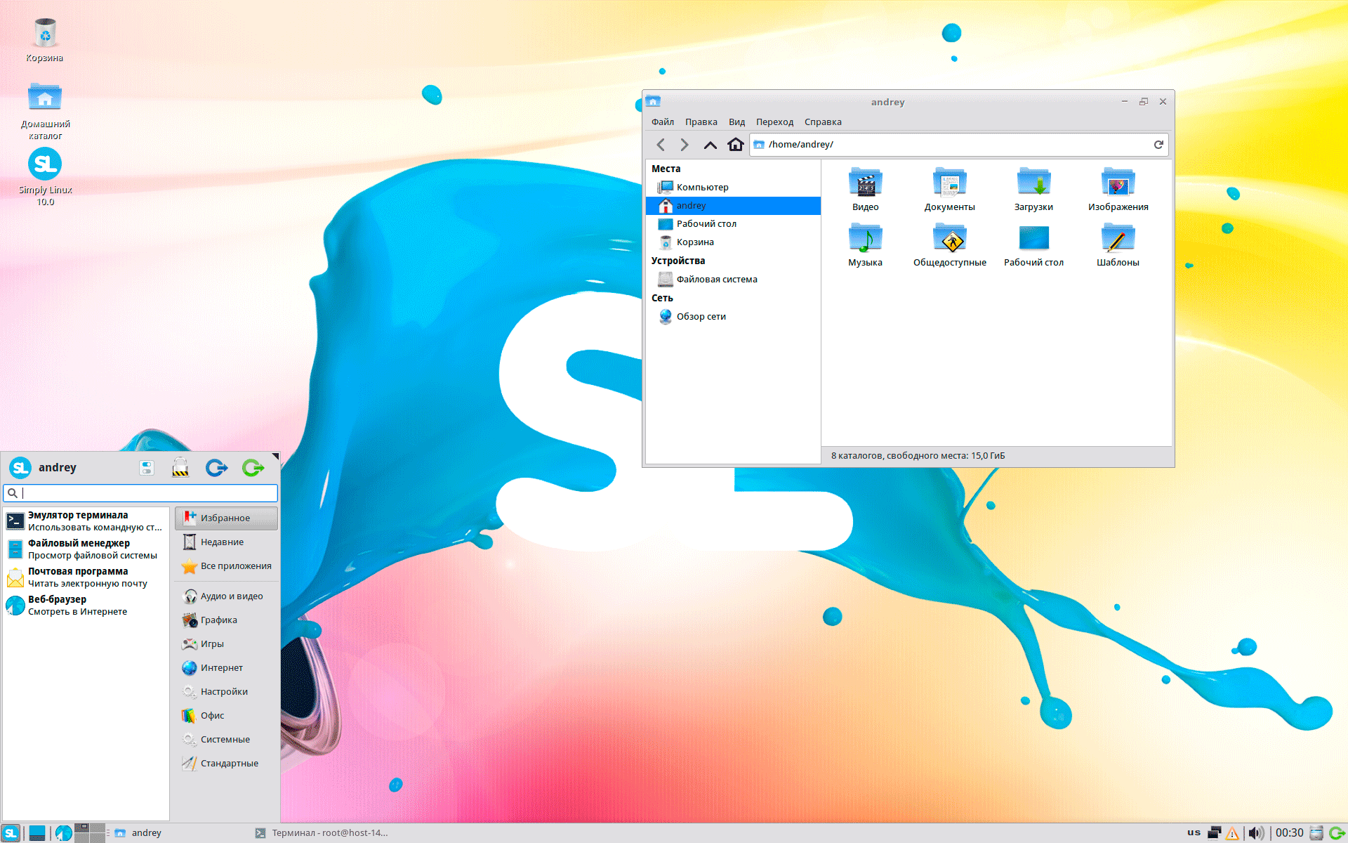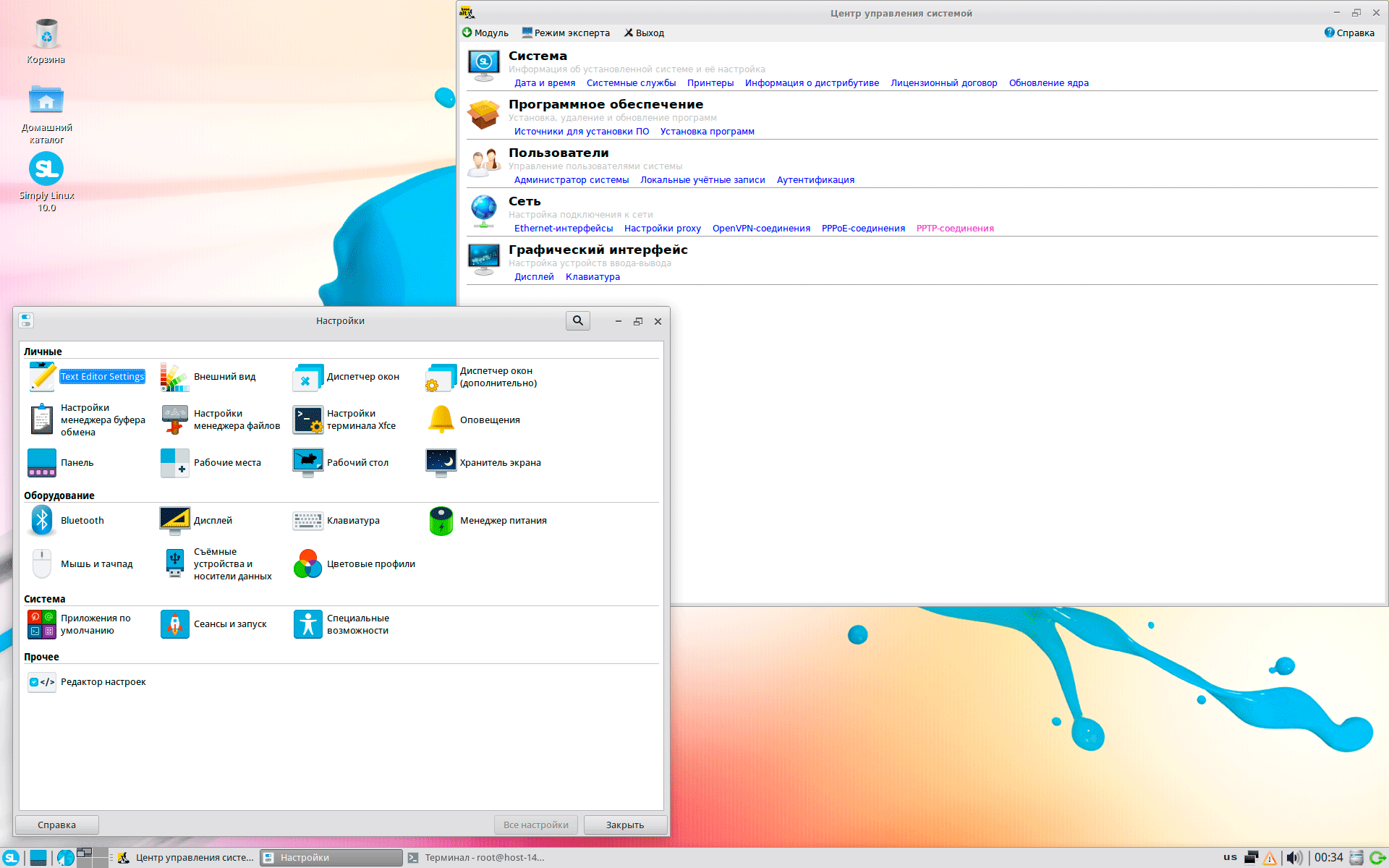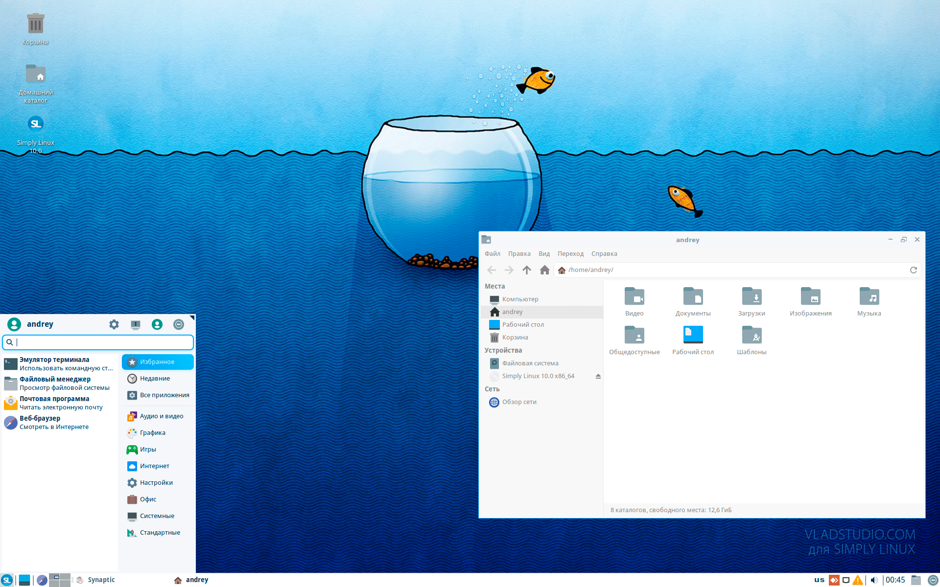 Еще рассматривая предыдущий выпуск системы, мы отмечали крайне слабый графический дизайн, с тех пор ничего не изменилось. Simply Linux использует графическую среду XFCE, это неплохой выбор, представляющий разумный компромисс между внешним видом и быстродействием. Но внешний вид здесь не выдерживает никакой критики, дизайн системы катастрофически отстал лет на пятнадцать. Особенно дико это смотрится в контрасте с неплохо проработанным графически установщиком или реально классными авторскими обоями в составе релиза.