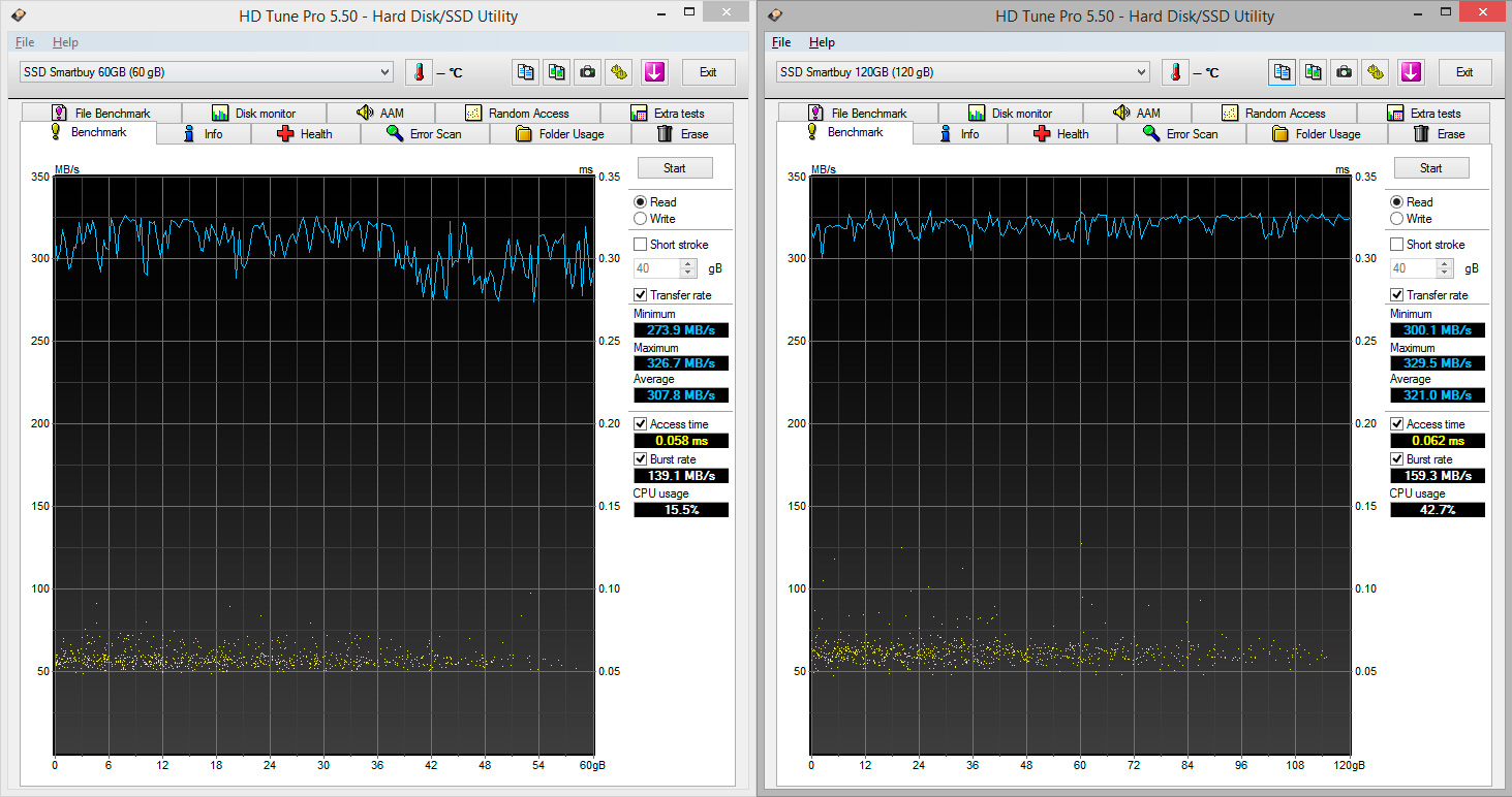 В нашу тестовую лабораторию попали два диска данной серии, емкостью 60 и 120 ГБ. Стоимость этих дисков на начало октября 2015 составила 38 и 52 USD соответственно, что сравнимо с ценой жестких дисков небольшой емкости, в среднем 55 USD за 500 ГБ модель. Тут есть над чем задуматься. Емкость или скорость?