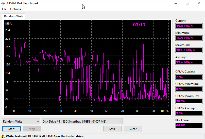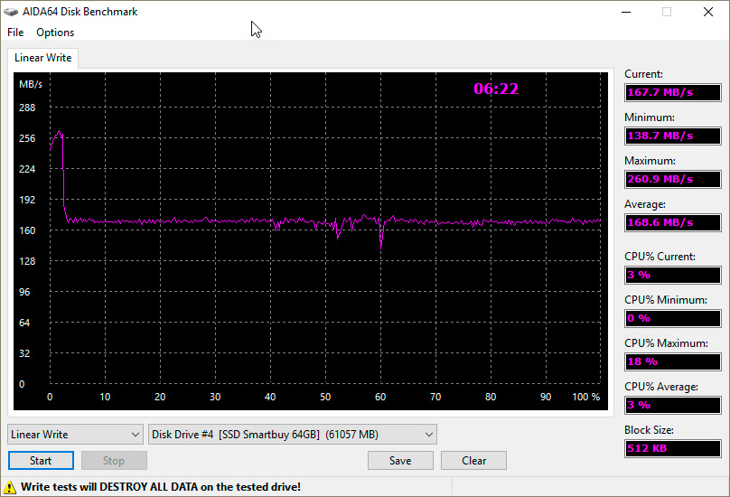 А вот в отношении записи все далеко не так радужно, в линейном сценарии отработав некоторый кеш объемом в несколько ГБ на высокой скорости, что позволило ему обойти Stels в первом тесте, скорость доступа упала до скромных 168 МБ/с (против стабильных 250 МБ/с у Stels), о сравнении с Ignition 4 речи и вовсе не идет.