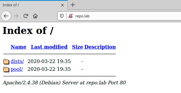Чтобы проверить работоспособность репозитория просто наберите в браузере http://repo.lab, если вы увидите следующую картину - то все работает правильно.