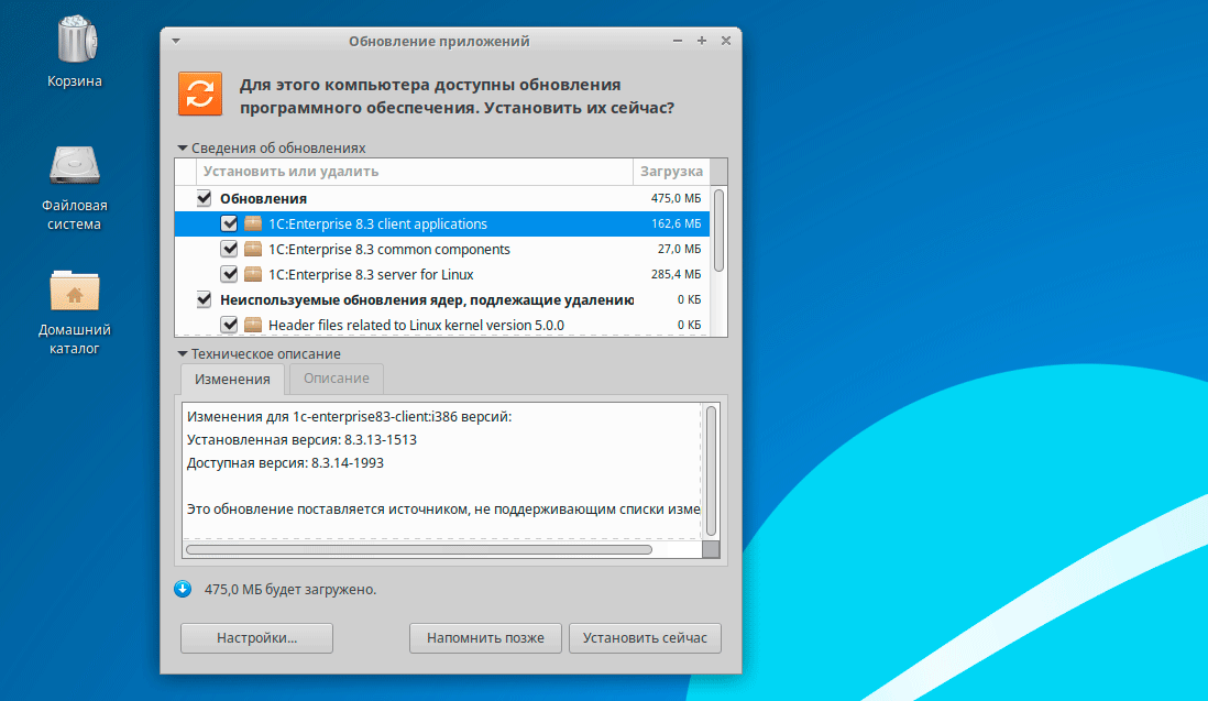 Сохраним файл и обновим список пакетов, теперь обновить 1С можно штатными инструментами, например, apt в командной строке или графическими утилитами из состава окружения рабочего стола.