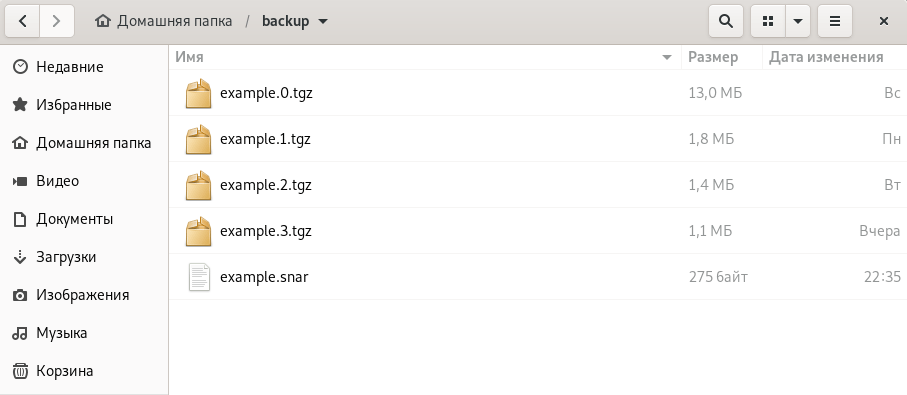 Как видим, каждый архив содержит только добавленные данные и не повторяет содержимое других архивов.