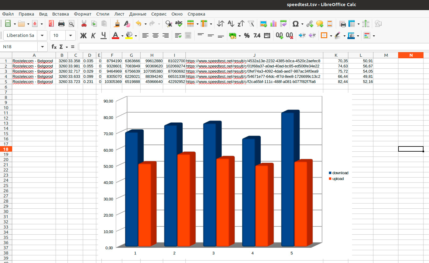 Но возможности Speedtest этим не ограничиваются, утилита способна выводить информацию в различных форматах: несколько вариантов JSON, CSV и TSV (CSV с разделителем Tab). Для этого используйте ключ -f или --format: