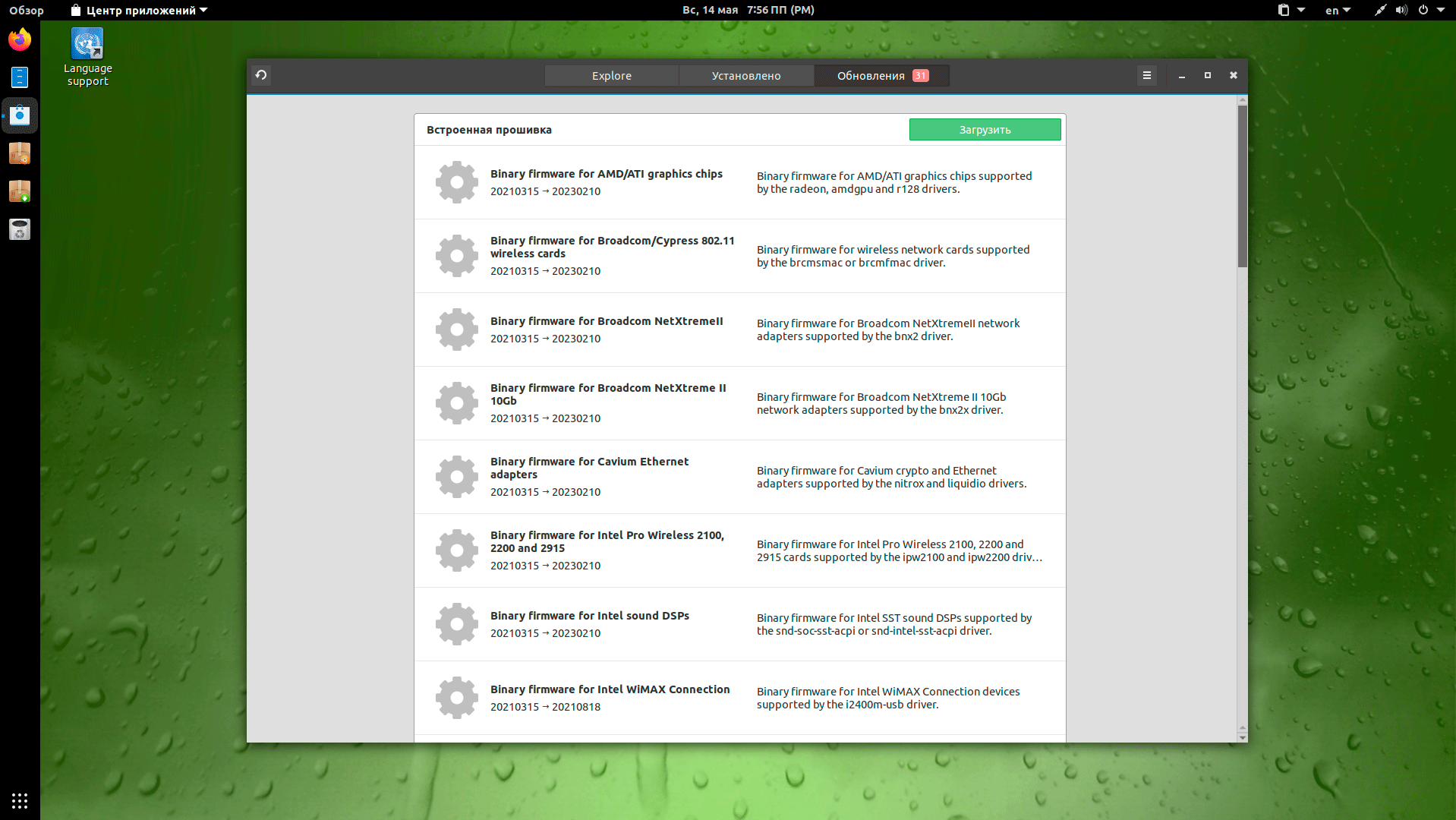 - Установлены бинарные прошивки, драйвера и кодеки, расширенная поддержка принтеров