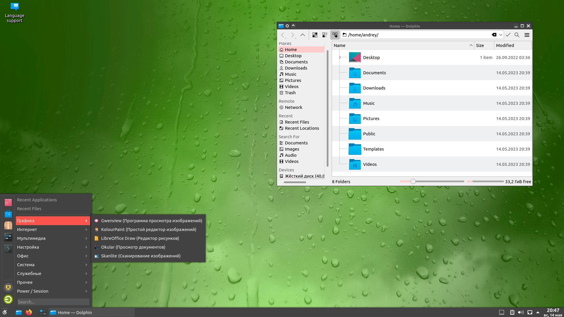 А вот с KDE Plasma возникли проблемы с русификацией, после установки система так и осталась с английским интерфейсом, даже после установки всех языковых пакетов практически везде пришлось включать русский язык вручную, при этом часть системы так и осталась нерусифицированной.