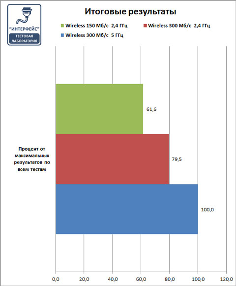 Так 300 Мбит/с сеть на 20% быстрее 150 Мбит/с, а диапазон 5 ГГц добавляет еще 20% производительности. С одной стороны немного, с другой стороны макисимальная разница - 40%, а это уже немало. Однако однозначных рекомендаций здесь не будет, все зависит от стоящих перед беспроводной сетью задач.