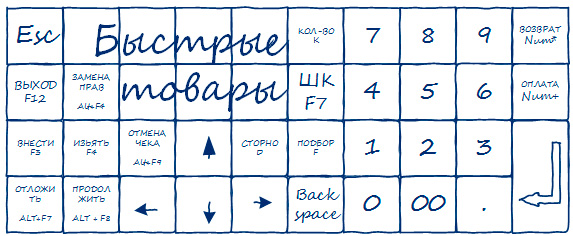 Перед тем, как собственно переходить к программированию, возьмите в руки лист бумаги, на котором схематично изобразите раскладку клавиатуры и открыв перед собой РМК попытайтесь расположить все необходимые клавиши в оптимальном порядке. Неплохо привлечь к этой работе кассиров, особенно если они уже работали с такими клавиатурами и имеют определенные предпочтения или привычки.