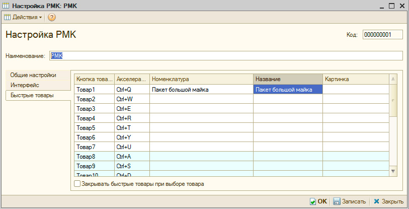 В 1С:Розница быстрые товары задаются в настройках РМК, привязываясь к заранее выбранным сочетаниям клавиш, это позволяет произвольно менять их список не перепрограммируя клавиатуру, это могут делать сами сотрудники, все что им понадобится - это заменить вкладыш на клавише.