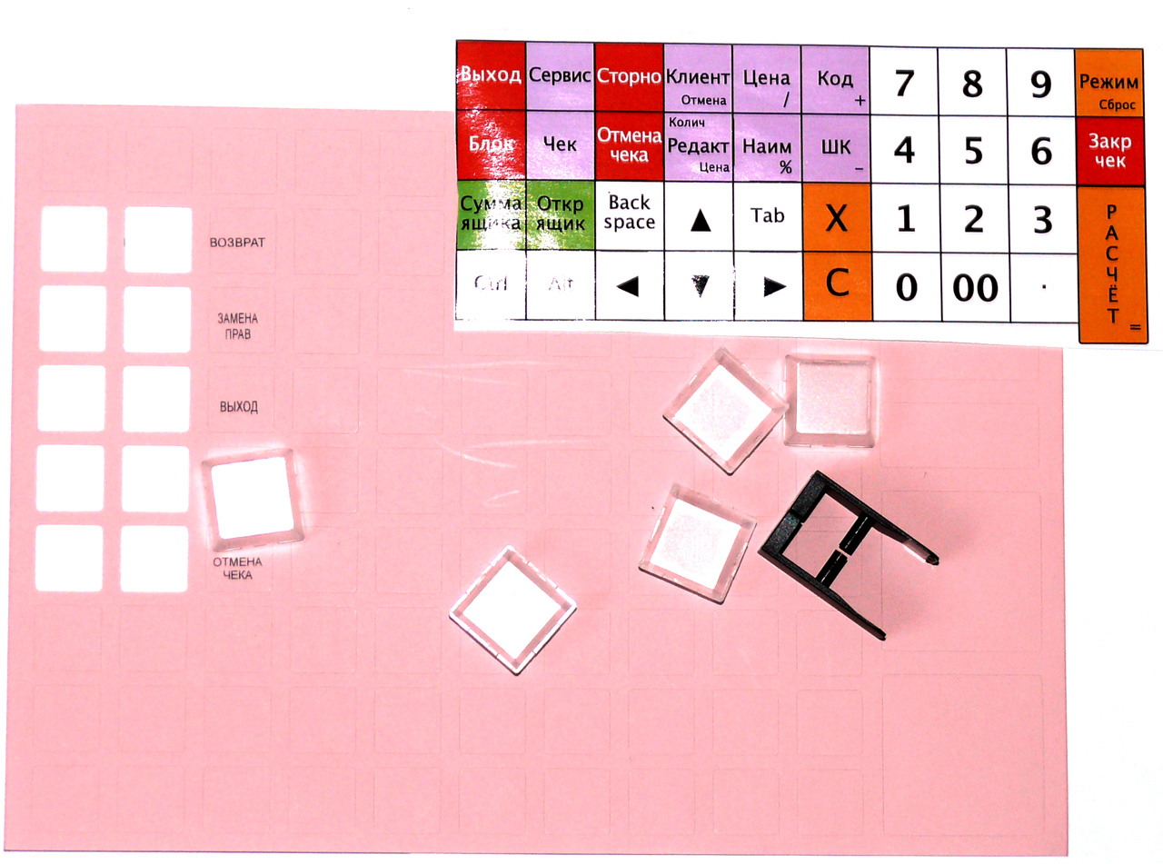 Кроме того, АТОЛ добавляет к своим клавиатурам готовый набор вкладышей под собственное ПО, в принципе некоторые клавиши можно вырезать оттуда. Хотя мы советуем либо напечатать все на наклейках, либо распечатать вкладыши на цветном принтере, создав собственный шаблон.