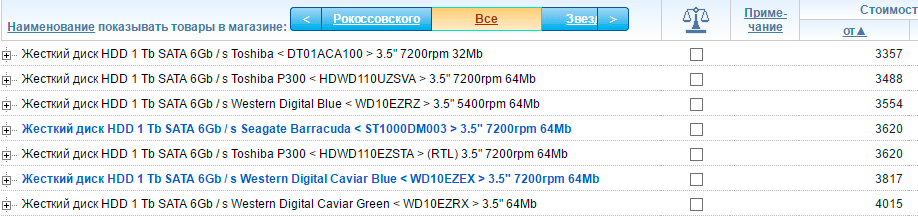 Прайс-листы недорогих массовых HDD не выделяются особым разнообразием, выбирать приходится из одной-двух моделей трех основных производителей: Seagate, WD и Toshiba, которая присоединилась к первым двум купив подразделение Hitachi по производству 3,5" дисков.
