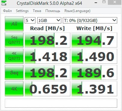 Начнем с традиционного CrystalDiskMark: