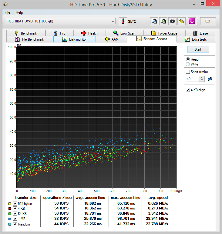 В данном тесте диск ничем не выделяется из одноклассников, разве что высоким временем случайного доступа 18,9 мс, как у предыдущей модели.