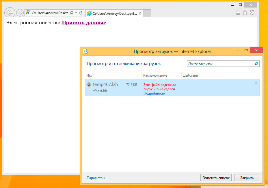 Ситуация, с которой пришлось столкнуться одному из наших клиентов, полностью укладывается в классическую схему. При установке ПО для удаленной сдачи отчетности, в полном соответствии с прилагающейся инструкцией, был отключен антивирус, позже было получено письмо якобы от судебных приставов, которое было благополучно открыто.