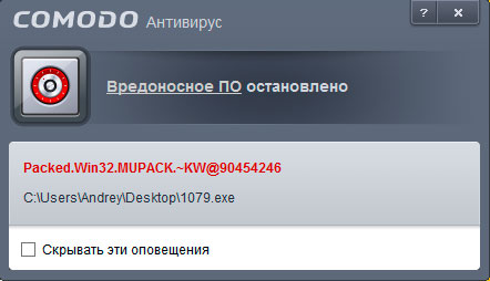 В своих антивирусных продуктах Agnitum делает упор на проактивную защиту. Возможно не зря, несмотря на отсутствие трояна-загрузчика в базах, проактивная защита определила его как умеренно-подозрительный.