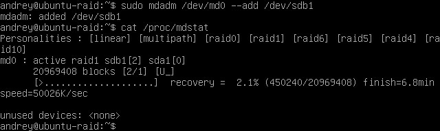 1sudo mdadm /dev/md0 --add /dev/sdс1