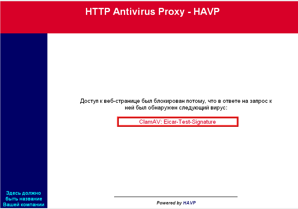 Установка HAVP и настройка Squid ничем не отличается от уже рассмотренного нами примера. Настраиваем, проверяем: