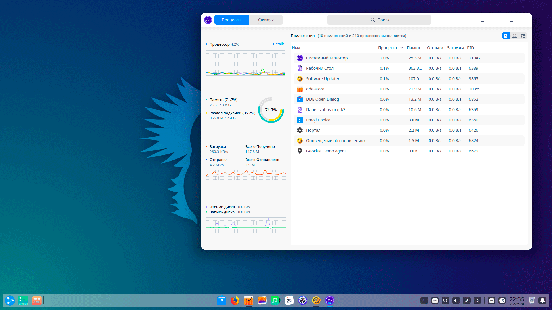 Что касается ресурсов, то следует понимать, что DDE никогда не позиционировалась в качестве легковесной оболочки, наоборот, упор был сделан на качество графики и современные эффекты. Это накладывает определенные требования, хотя по сегодняшним меркам их трудно назвать высокими.